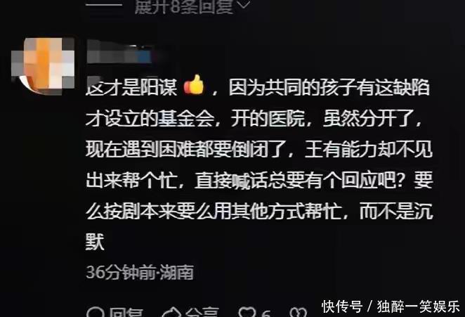 而且我看有些网友的评论也挺有意思。有人说陈光标这是“阳谋”,就是故意把事情挑明,你看医院是当初你们因为女儿李嫣一起办的,现在要撑不下去了,王菲你有能力怎么不吱声呢?逼着你出来给个态度。